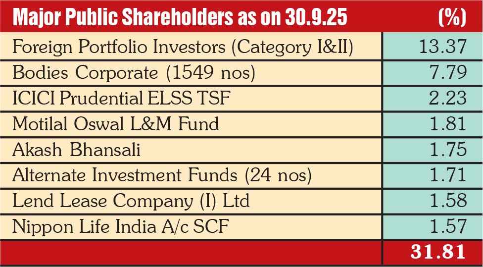 The current equity capital stands at Rs 1,728.24 crore (with the promoter group holding 44.18%) with reserves of Rs 4792.10 crore, translating to a book value of Rs 37.73 per Rs 10 face value. As of September 2025, there is also a pending share warrant conversion of Rs 152.50 crore. Longterm borrowing is almost zero, whereas working capital borrowing is on the higher side at Rs 1,101.56 crore. Trade receivables of Rs 3,271.08 crore is disproportionately high vis-à-vis its H1 sales of Rs 1,945 crore in the current fiscal and Rs 3,557 crore for the full FY25. Capital work-inprogress of Rs 401.75 crore is mainly towards investment being made in the upcoming plant in Karnataka.